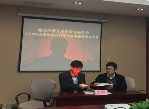 1月17日上午,泾渭建设公司 组织召开2016年度表彰暨2017年目标责任书签订大会。会上,董事长对2016年工作进行了总结并对2017年各项工作进行了安排部署。同时,表彰了2016年度先进部门及优秀个人,并与各部门签订了2017年目标责任书。