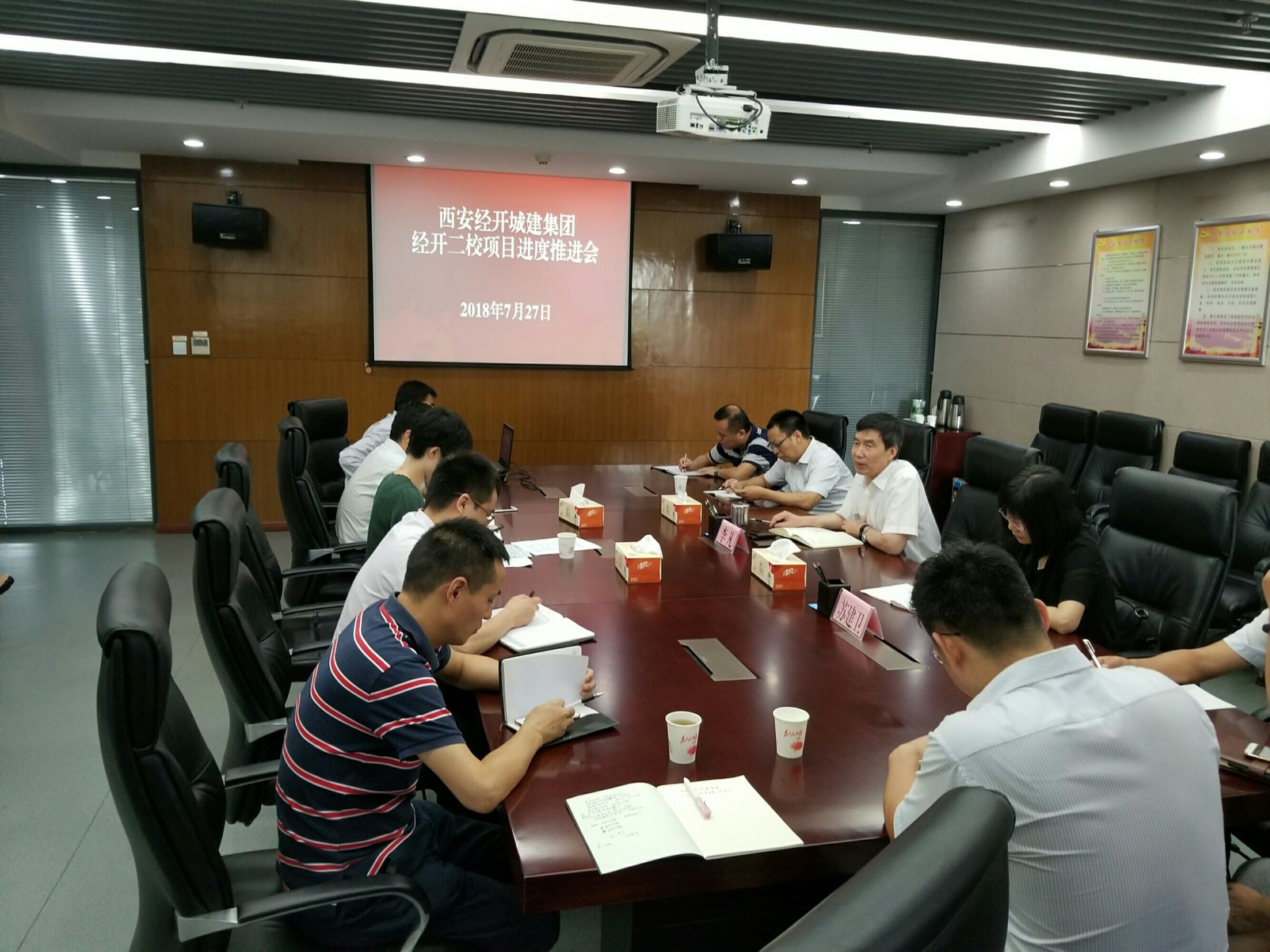 7月27日下午,城建集团党委书记、总经理李凡主持召开经开第二学校项目建设推进会,迅速贯彻落实钱虎威主任关于学校项目建设的指示精神。集团副总经理苏建卫、相关职能部门负责人,泾渭建设公司项目建设团队参加会议。