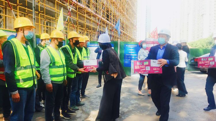 劳动最美丽,关爱最幸福。 4月29日上午,在“五一”劳动节即将到来之际,经开区党工委副书记、区工会工委主任苏俊良前往经开第二学校慰问项目一线工人,并代表经开区党工委,工会工委向奋战在各条战线的广大劳动者致以节日问候。 苏俊良认真听取项目建设进展情况,送去慰问品,表示“您们坚守岗位,不分昼夜干在一线,辛苦了!”“疫情还没结束,大家仍要注意防护”,对坚守在施工一线的工人们的表示亲切问候,并详细询问大家的工作和生活情况,对大家取得的工作成绩及良好的精神状态给予了充分的肯定。