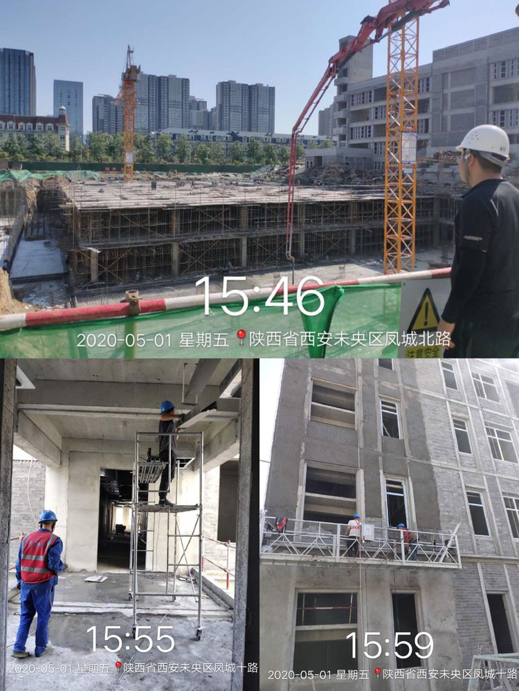 各项目有序推进建设进度,热火朝天战“五一”。 经开第二学校项目中、小学部分进行外墙外抹灰;中学操场地下室进行钢筋绑扎及模板支设;中学部外墙外保温正在施工;中学实验楼进行室内装修施工。