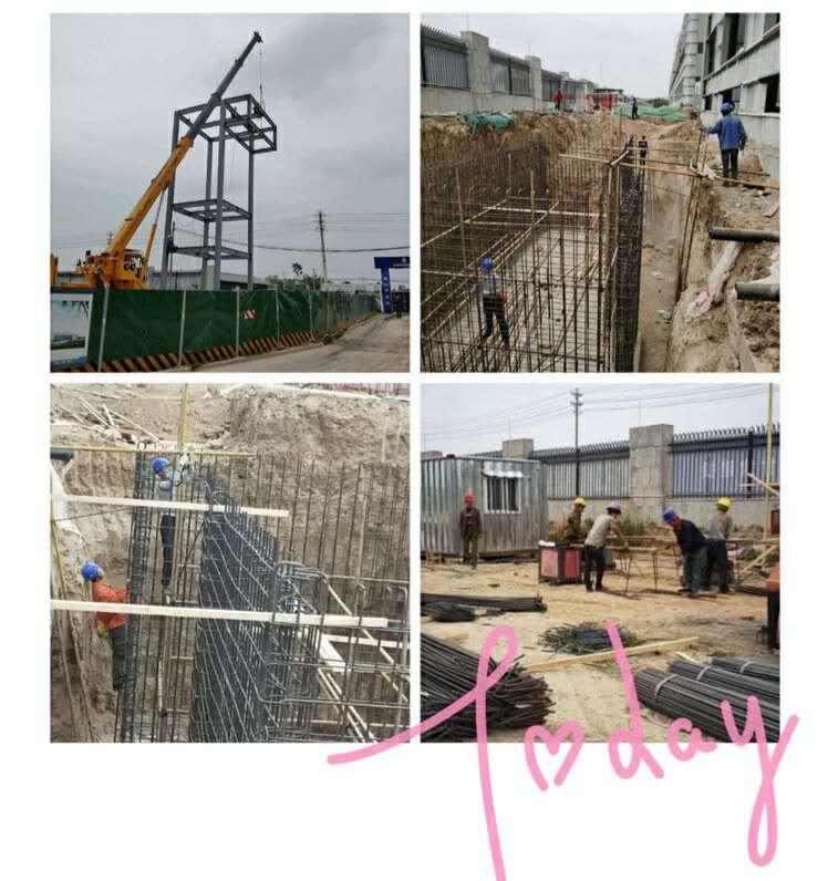 众邦电线电缆室外工程1号厂房软化水池墙身模板完成安装;4号厂房BTTZ水池底板浇筑完成; 冷却循序水池垫层及底板浇筑完成;3号厂房消防水池桩基静载试验完成;门卫室钢结构立柱安装完成; 锅炉房基础筏板、梁柱浇筑完成。