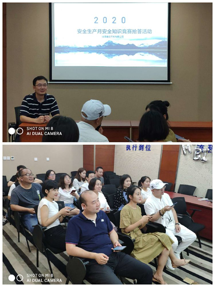 安全常识抢答 6月12日上午,公司组织开展“安全生产月”知识竞赛活动,来自8个部门的15名员工代表参加了竞赛。知识竞赛内容涵盖建设项目安全生产常识、职业健康劳动防护等方面的相关知识,突出了“消除安全隐患,筑牢安全防线”主题。 竞赛形式分为必答题、抢答题、风险题,各参赛选手进行了充分的赛前准备,在竞答过程中,各参赛选手踊跃答题,各显其能,大显身手。