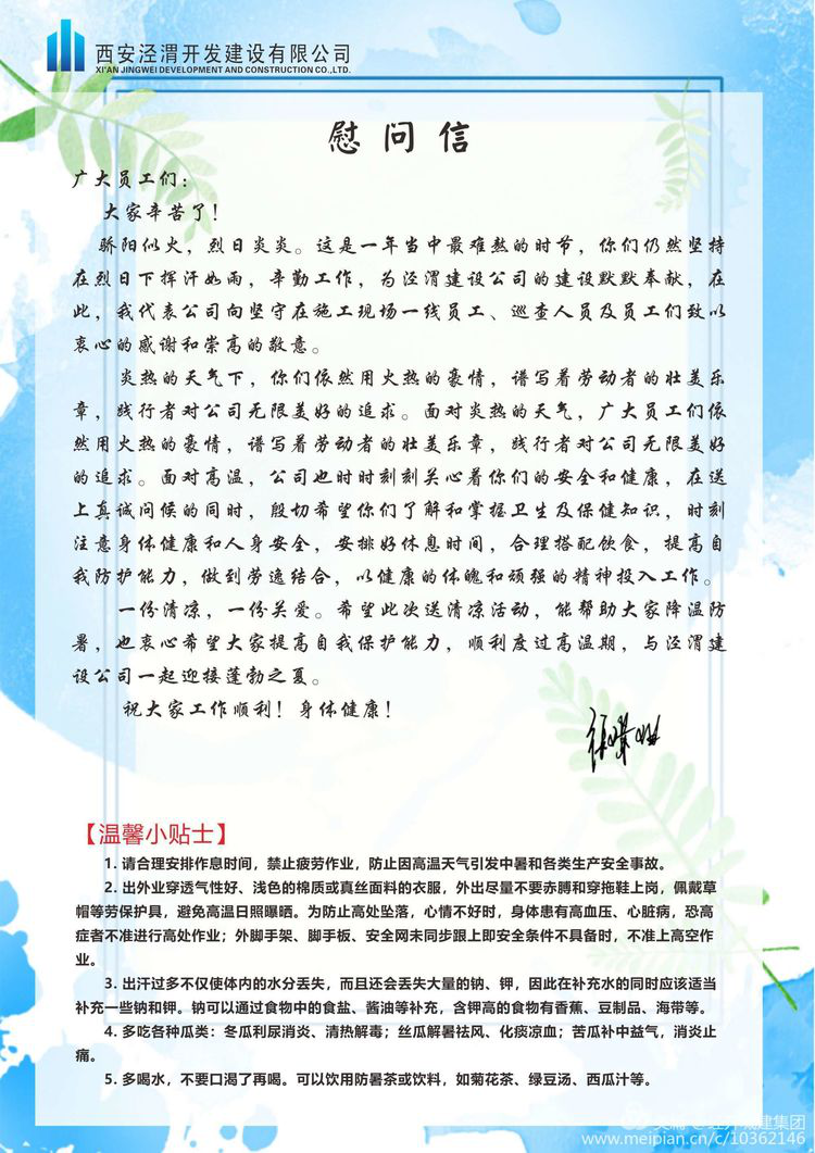 | 泾渭建设公司组织开展“夏日送清凉 关怀沁人心”主题活动 |