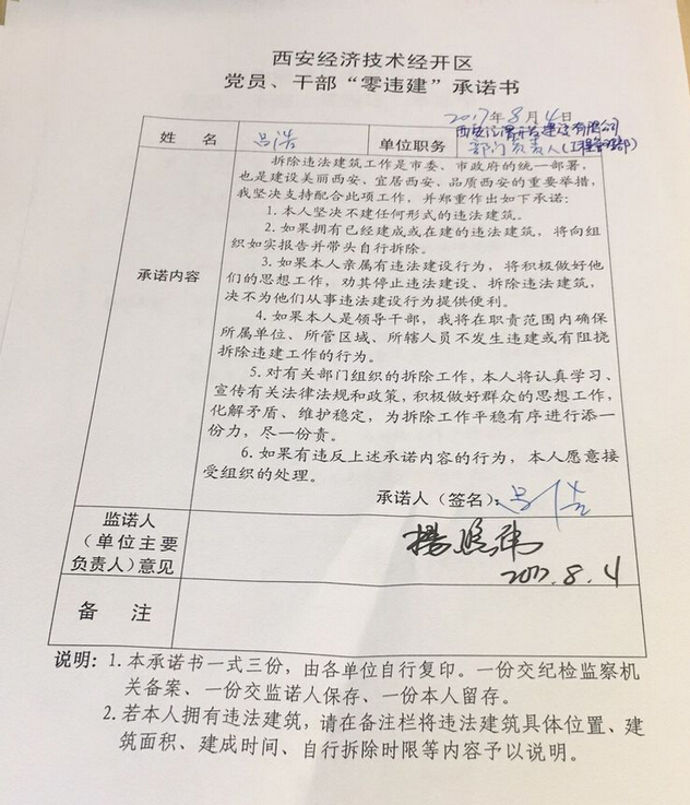 会后,公司全员签订了《党员、干部"零违建"承诺书》。